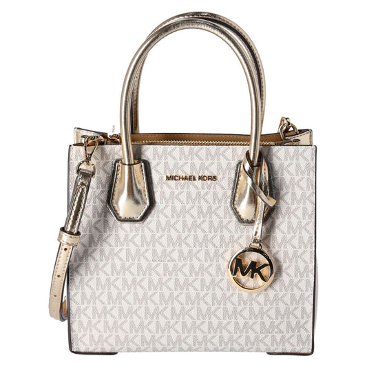 Michael Kors Mercer Medium Vanilla MK Signature Messenger Satchel Bag Pale Gold