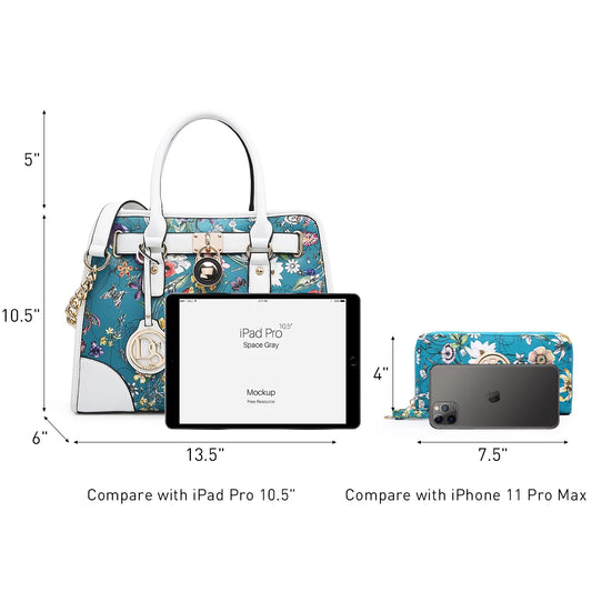 Women Structured Handbags Top Handle Satchel Purse Shoulder Bag Briefcase Hobo Bag Set 2Pcs