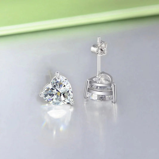 Silver Plated Cubic Zirconia Heart Earrings, 7Mm, with Push Back, Women, Girls, Unisex